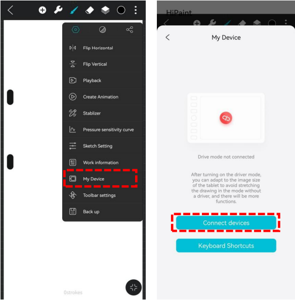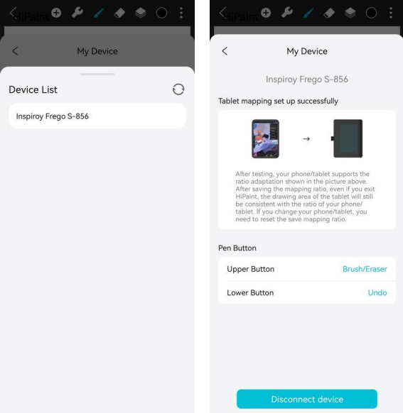 We collaborated with HiPaint to bring a better mobile drawing experience. When you connect the Android phone or tablet to Inspiroy Frego via HiPaint, this app can automatically recognize the aspect ratio of your phone or tablet, and map it to the working area of Inspiroy Frego to prevent the discrepancy of ratio. You can also set the function of the button in HiPaint app.