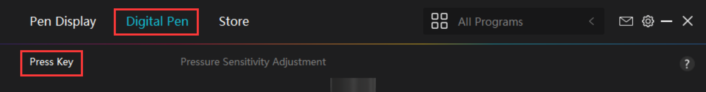 - In the driver, go to the "Pen Display" or "Pen Tablet" tab, then "Press Key".
