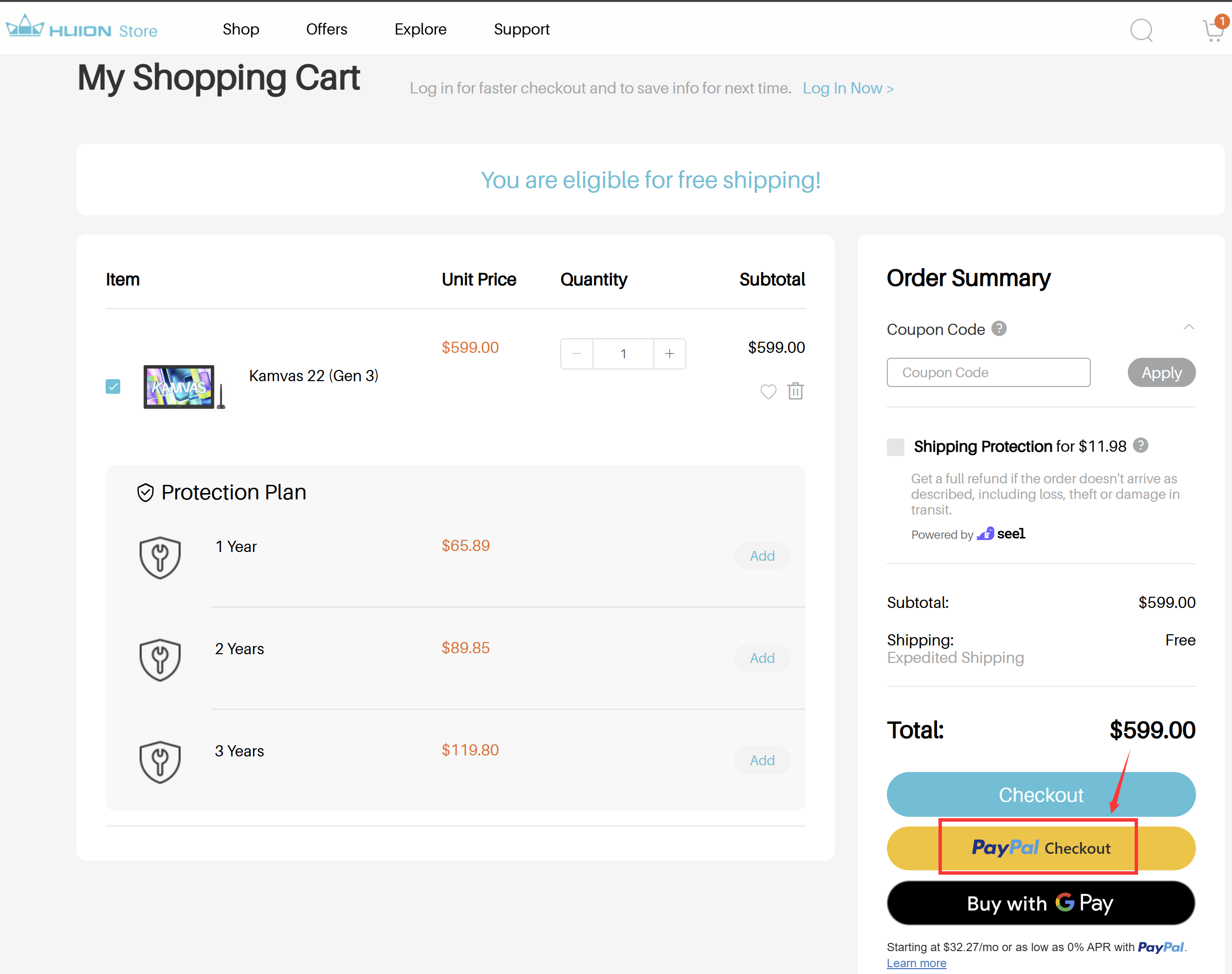You can use PayPal to purchase your Huion device on our official store at store.huion.com. Follow the steps below: