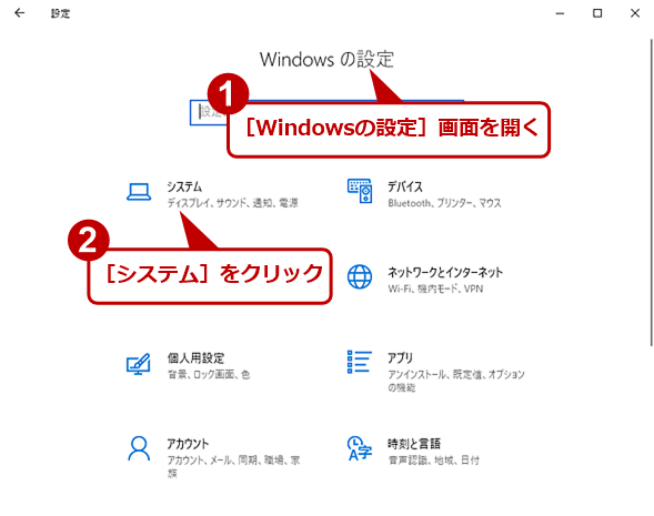 - 設定ウィンドウが開いたら、「システム」をクリックします。