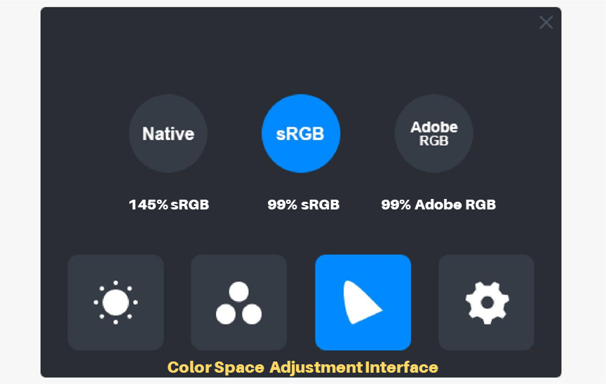 OSDメニューの一番下の3番目のアイコンをクリックし、色空間を調整できます。