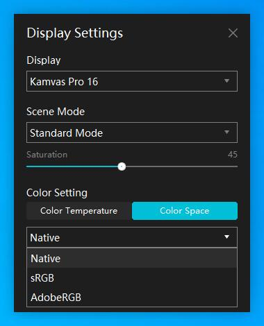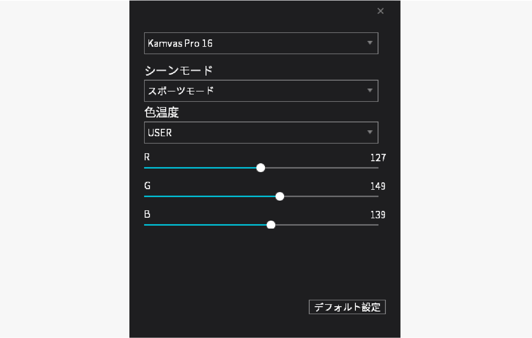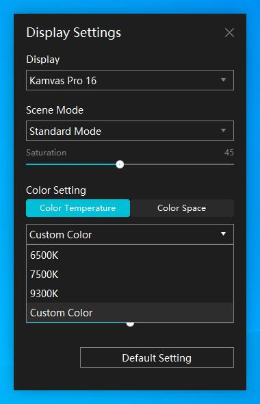 色温度調整は現在Kamvas Pro 13(2.5 K)とKamvas Pro 16(2.5 K)にしか適用できない。