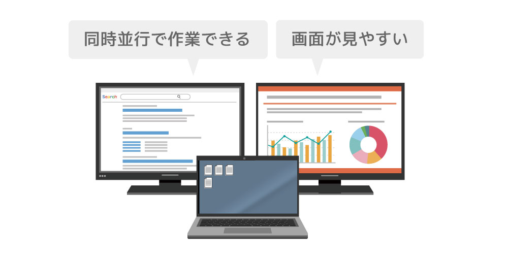 複数のディスプレイという意味で、「マルチディスプレイ(マルチモニター)」と表現することもあります。