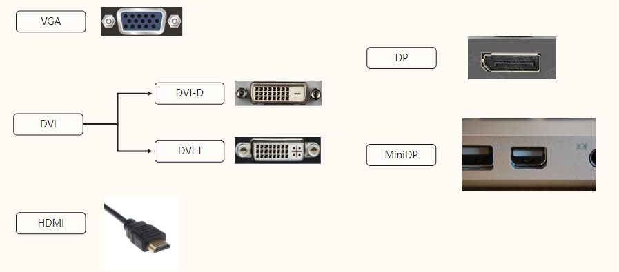デスクトップPCである場合、ほとんどの最新グラフィックカードには、以下のような複数の出力端子があります:
