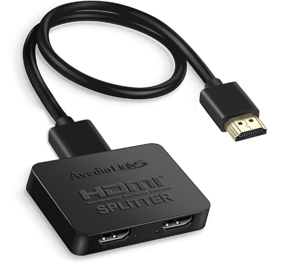 HDMI分配器(スプリッター)を使えば、1つのHDMI信号を2台のディスプレイに同時表示することが可能です。ただし、この方法では2画面がまったく同じ内容を表示する「ミラー表示」になります。「片方にブラウザ、もう片方に資料」というような用途には使えません。