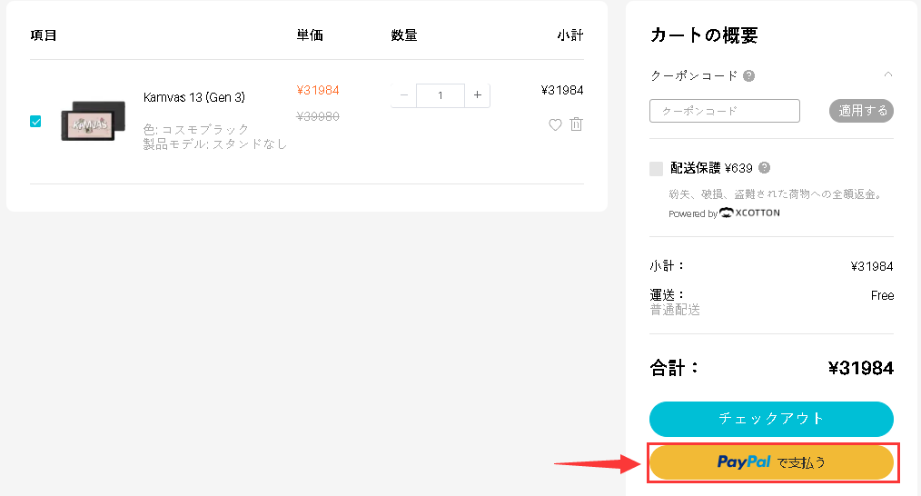 ペイパルを利用して HUION 公式ストアで商品をご購入いただけます。以下の手順に沿ってお進みください。